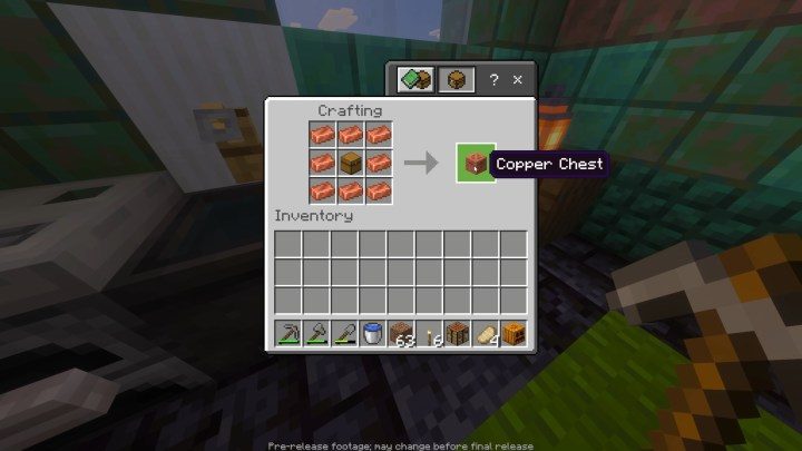 Una vez que hagas un gólem de cobre, automáticamente generará un cofre de cobre. Sin embargo, eso es solo uno, y un cofre nunca es suficiente, ¿verdad? Para hacer más, necesitarás lingotes de cobre, un cofre y una mesa de trabajo.