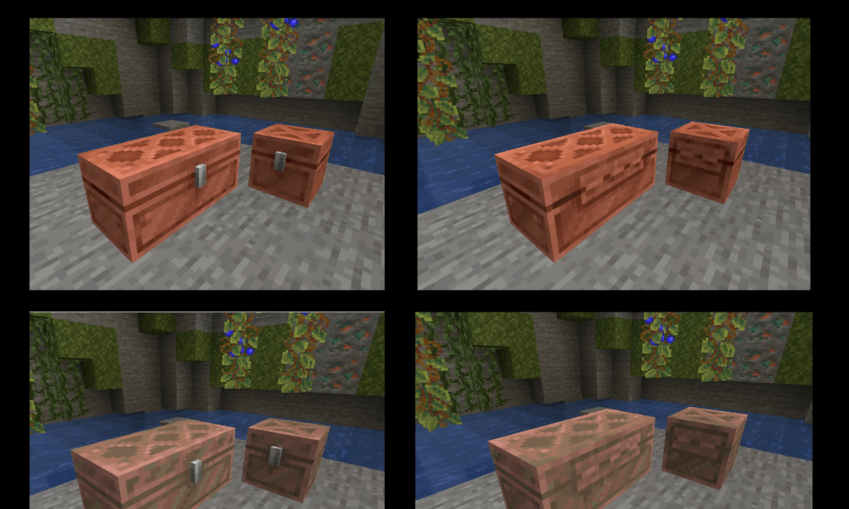 Una vez que hagas un gólem de cobre, automáticamente generará un cofre de cobre. Sin embargo, eso es solo uno, y un cofre nunca es suficiente, ¿verdad? Para hacer más, necesitarás lingotes de cobre, un cofre y una mesa de trabajo.