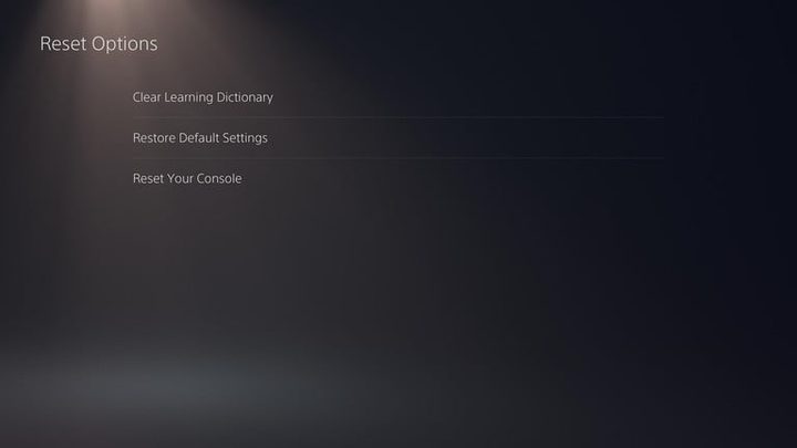 - Borrar diccionario de aprendizaje automático: Elimina todos los términos que hayas introducido en tu PS5. La consola usa términos que has ingresado para predecir lo que podrías estar buscando. Esta configuración restablece los términos almacenados en la consola. No afecta los datos guardados, los juegos, las aplicaciones ni los datos de usuario.