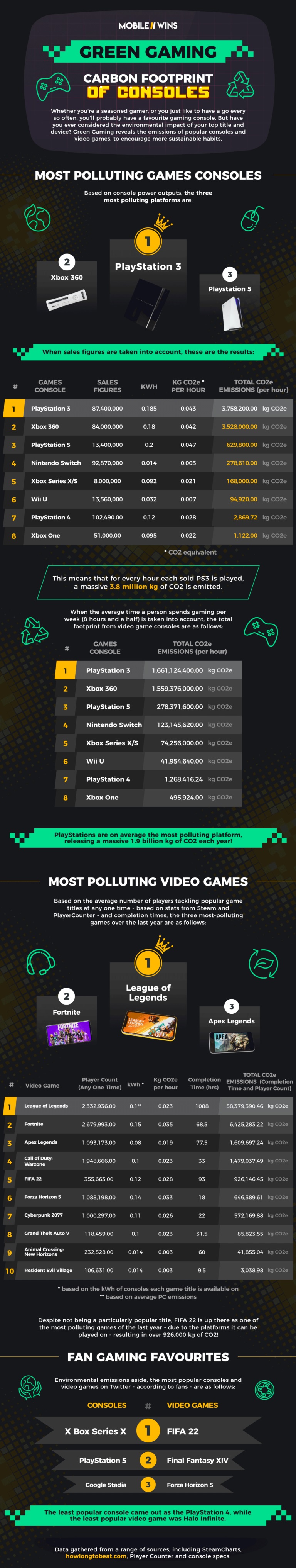 La plataforma de apuestas de deportes electrónicos Mobile Wins publicó un estudio que estima la huella de carbono de las principales consolas de videojuegos para, en pocas palabras, tratar de ofrecer una cifra con más o menos rigor científico de cuánto contaminan lo productos de esta industria.