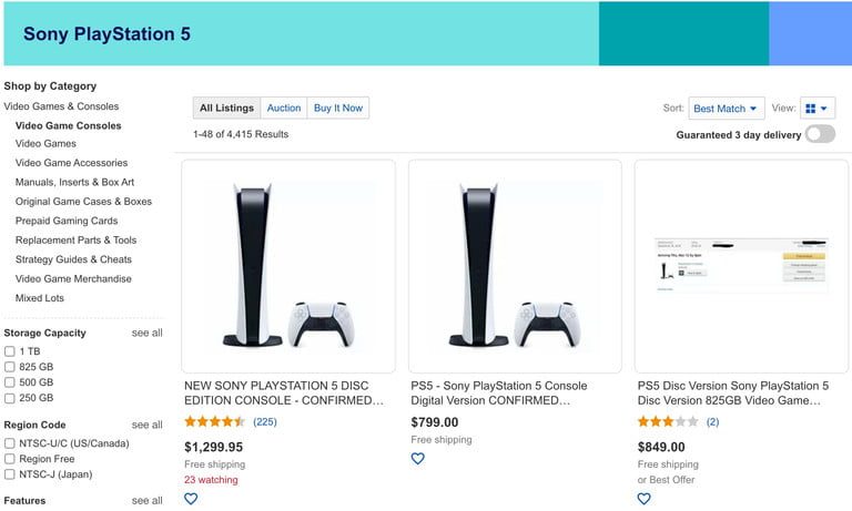 En segundo lugar, los vendedores de eBay cobran una prima para conseguir las primeras ventas, así que es probable que organizar una compra de PS5 a través de eBay te cueste al menos unos cientos de dólares más, lo cual claramente no es una gran oferta. Si has decidido mantener a eBay en tu lista, recurre a este solo si tus otras opciones se agotaron.