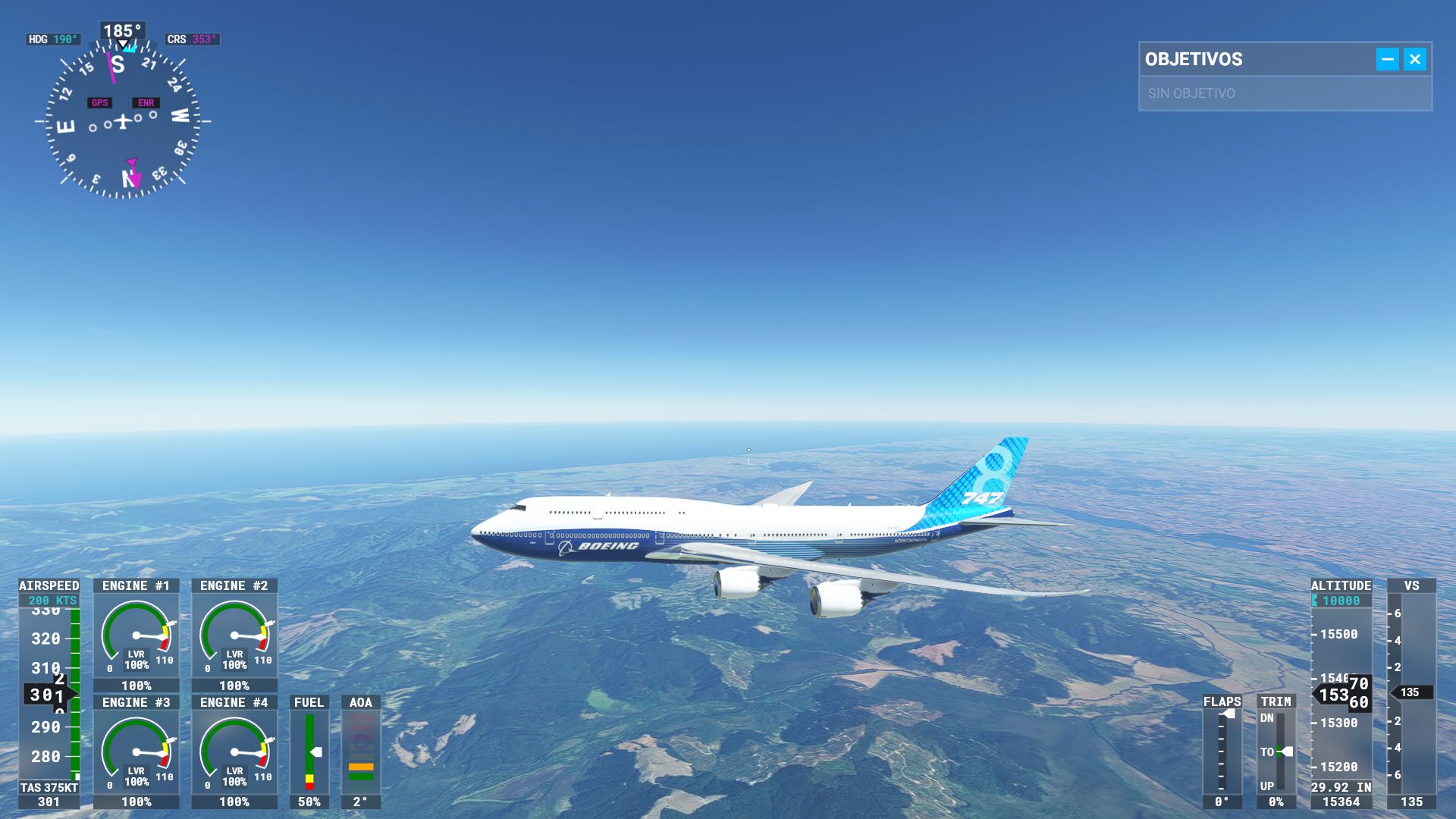 Sin embargo, esto cambia cuando los aviones son más complejos. Algunos controles resultan más contextuales, amén de que hay combinaciones de botones para acciones más específicas. Pero ya en entornos más de simulación o de acciones mucho más específicas en tableros gigantescos como los de un Boeing 757, no queda más remedio que utilizar el modo cursor y mover el puntero en pantalla para alcanzar botones, palancas o paneles.