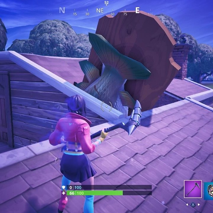 Otro agregado cerca de las aguas termales de Sunny Steps y Lazy Lagoon es un pez de madera. Es muy probable que esto sea utilizado en algún desafío a futuro, así que mantente atento a ello. Por último, hay varios Fortbytes que puedes encontrar en el mapa. Parece que hay un total de 100, y aunque algunos están ligados a desafíos, parece que se revelará alguna skin o recompensa especial por encontrarlos todos antes de que termine la temporada.