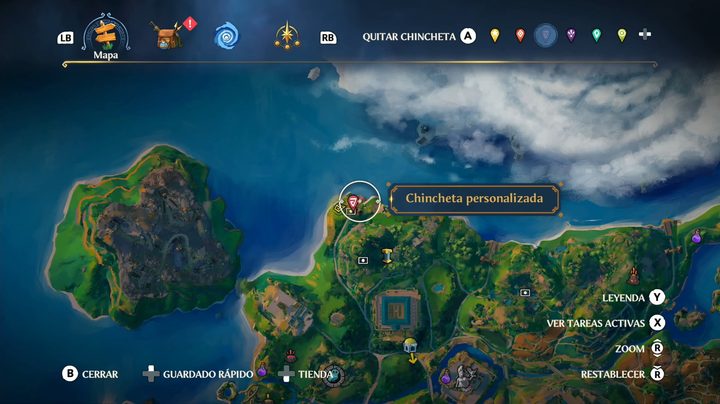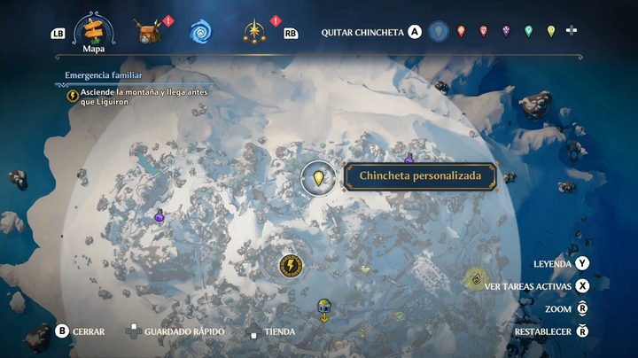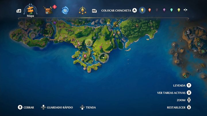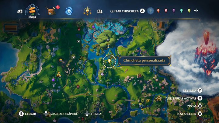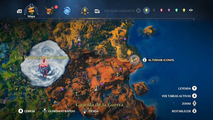 Las misiones de Cima del Rey recién se abren al haber recuperado las esencias de los cuatro dioses, pero de cualquier manera se puede acceder al área antes de tiempo, si tienen la barra de resistencia suficiente. Una vez aquí, Asfódelo se encuentra en la zona sureste del mapa (indicada en la foto) y aún sin haber limpiado la niebla del lugar, su acceso es relativamente sencillo y con la habilidad de hacerse invisible, domarlo no será problema.