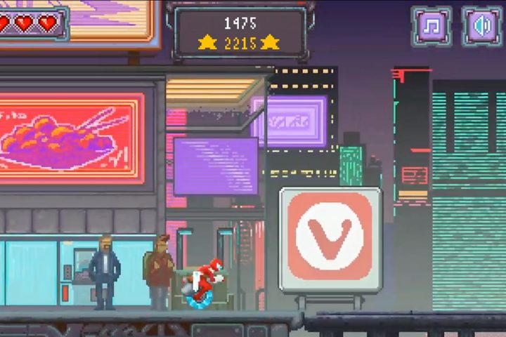 Se llama Vivaldia y es un juego arcade de desplazamiento lateral incorporado en el navegador Vivaldi.