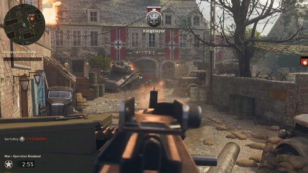 El enfoque de Call of Duty 2 para el modo multijugador fue más relajado que algunos de los títulos posteriores y no te apabullaba con un millón de estadísticas al completar una partida. Pese a esta relajación, el diseño del mapa resultaba espectacular y abatir a un enemigo desprevenido desde una ventana era increíblemente satisfactorio.