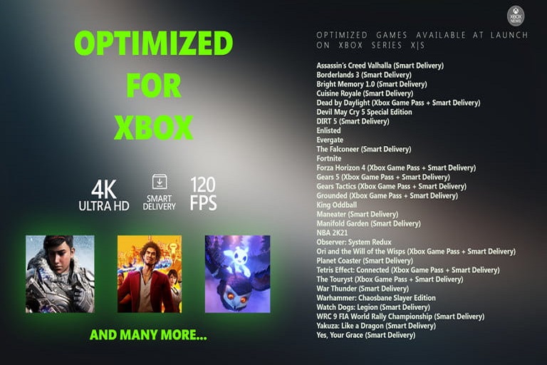 Estoa juegos estarán disponibles en diferentes formas. Juegos como Assassin’s Creed Valhalla utilizan la función Smart Delivery, dándole a los jugadores que tienen la Xbox One una actualización gratuita. Algunos de estos juegos actualizados estarán disponibles vía Game Pass, incluyendo títulos como Gear Tactics y Ori and the Will of the Wisps.