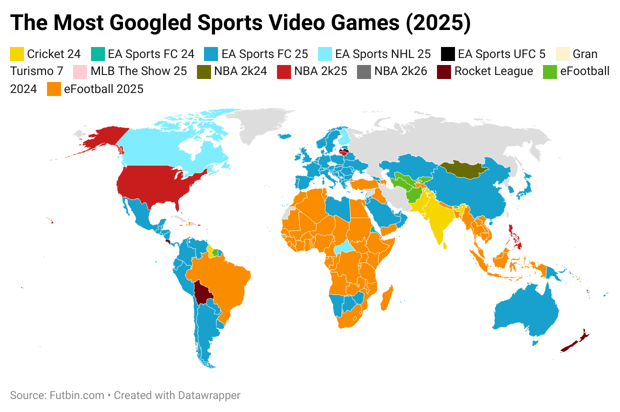 - EA Sports FC 25 fue el título deportivo más buscado en 86 países, con una media de 2.240.000 búsquedas mensuales.