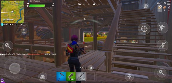 El tema con jugar Fortnite en una pantalla de un celular, o incluso algo más grande como un iPad, es que al ser pequeña hace que disparar a distancia sea algo más complicado. El combate a distancia en Fortnite ya es menos fiable que en otros juegos de battle royale y tener que experimentarlo en una pantalla pequeña usando controles táctiles lo hace más complejo aún. Es por esto que frecuentemente te verás obligado a disparar varios tiros a larga distancia, pero esto alertará a tus enemigos.