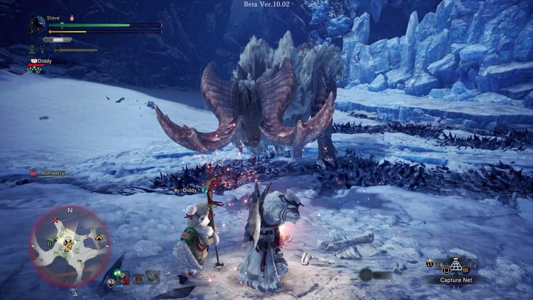 No dejes que la estatura de este monstruo nuevo que parece un alce te intimide. Aquí puedes sacar buen provecho de la garra Clutch Claw, una herramienta retráctil con la que enganchas a los monstruos. Banbaro tiene un ataque principal cuando hay algo de distancia entre ustedes: ataca con los cuernos, apuntando al suelo y llevándose lo que se encuentre en su camino, que con frecuencia son rocas de nieve. Si te golpea una, sufrirás el efecto Iceblight, que hace que te muevas más lento y pierdas energía más rápido. Para curarte, cómete una Nulberry. A veces Banbaro arroja ramas; eso solo causa daños.