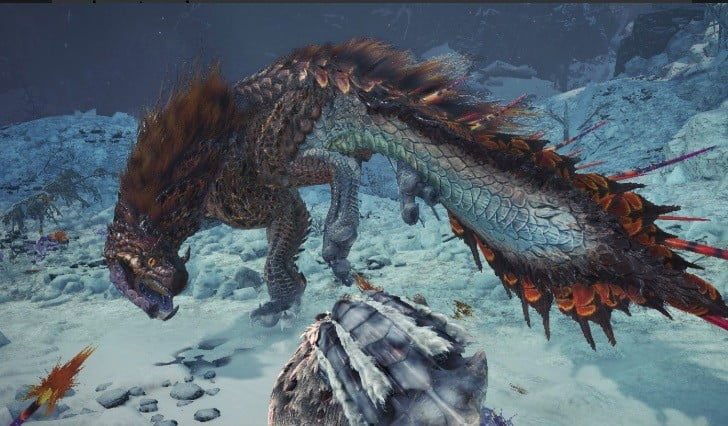 Beotodus, el primer monstruo que combates en Hoarfrost Reach, nada como pez a través de la nieve con ayuda de una gran aleta en su espalda. Para sacarlo de la nieve y que se pare en sus piernas regordetas tienes que tirar toda la nieve que cubre su cuerpo. Un modo rápido de hacerlo es con bombas sónicas. Beotodus se mueve rápidamente cuando está bajo la superficie y de vez en cuando se lanza hacia el fondo para luego emerger con un poderoso ataque. Cuando está fuera de la nieve tiene un ataque lateral similar al del Jyuratodus.