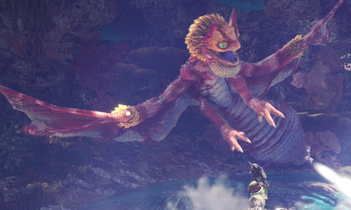 A Coral Pukei-Pukei, una subespecie del ave boba favorita de todos, le encanta dispararte agua. Localizada en Coral Highlands, Coral Pukei-Pukei usa su cola para absorber agua y luego la rocía en todas direcciones, causando daños y Waterblight, un efecto que causa que recuperes energía a un tercio de la velocidad normal. También utiliza su gran lengua como arma. Sin embargo, en general, Coral Pukei-Pukei parece una versión más agresiva del original pero con potentes ataques de agua.