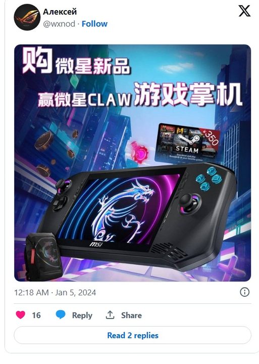 Después de un breve teaser ayer, las imágenes de la computadora de mano Claw de MSI han aparecido en X (anteriormente Twitter), descubiertas por VideoCardz.