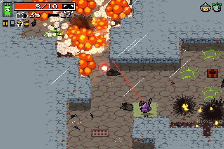 Pero, esto también se siente como un juego de terror a veces. Las gotas aleatorias ayudarán (o lastimarán) a tu personaje mientras subes por cada piso en este juego de disparos de arriba hacia abajo. Es grotesco, difícil y divertido, y no hay nada más parecido.