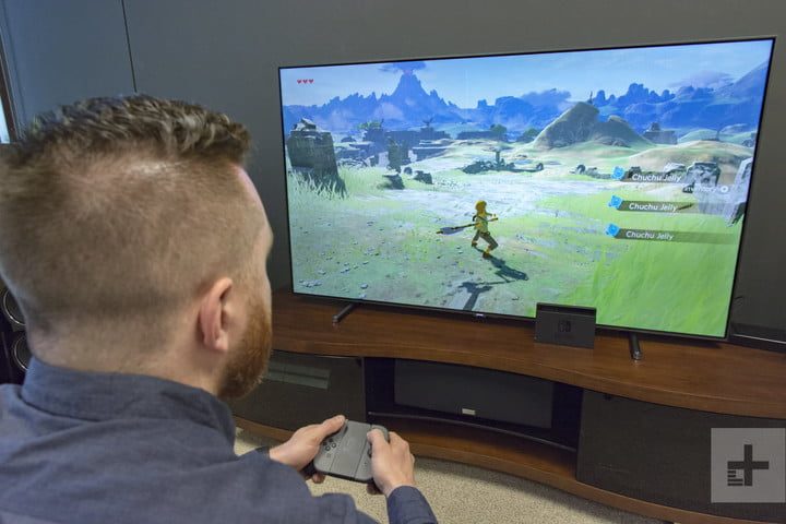La Switch, por su parte, permite a los jugadores cambiar las cosas y controlar los juegos de muchas maneras distintas. Con los Joy-Con conectados y la consola acoplada, los usuarios pueden jugar con el Switch en un formato de consola tradicional. Cuando los Joy-Cons están conectados a la unidad principal, la Switch puede reproducirse de manera portátil. Su pantalla táctil capacitiva registra varias presiones de dedo a la vez. Además, la unidad puede apoyarse a través de un soporte en la parte posterior para el modo de mesa.