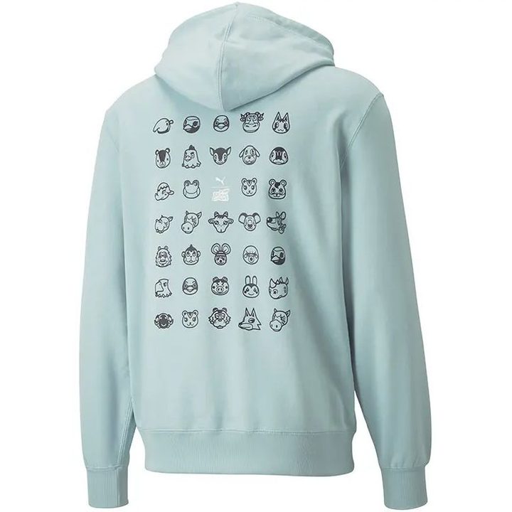 El mismo sitio también publicó la imagen de un hoodie en color verde agua con la espalda adornada con un puñado de los personajes que aparecen en los diferentes pueblos de Animal Crossing y que serán fácilmente reconocidos por quienes hayan jugado el más reciente título.