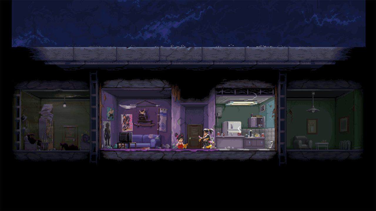 Todo comienza manejando al protagonista de esta historia, un samurai envuelto en una bata que se presenta en una perspectiva 2D, con un pixel art glorioso acompañado de animaciones muy cuidadas a lo largo de todo el juego. Los movimientos parecen bastante rudimentarios al principio: nos movemos de izquierda a derecha, podemos dar saltos en el aire o impulsarnos con paredes, y por supuesto al tratarse del género de acción, esquivar en el suelo volviéndonos invulnerables por esos segundos.