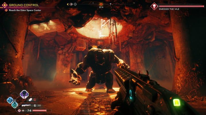 El combate es la base de la experiencia Rage 2, y enfrentarte a tus enemigos es un esfuerzo extremadamente satisfactorio, no importa de qué manera decidas hacerlo. Todo está diseñado para que no dejes de avanzar, como es común en los juegos con combate estilo id, como Doom (2016). La incorporación de los poderes de los Nanotritos es algo que respalda esto, además de ayudar a Rage 2 a establecer su propia identidad entre sus semejantes. Las armas son sumamente representativas del combate de cerca característico del estilo id, pero los poderes convierten a tu personaje en una fuerza de la naturaleza más potente. Puedes usar Slam para aporrear el suelo y destrozar un grupo de enemigos, o Focus, que comienza como un modo de localizar enemigos y objetivos, para destruir barriles explosivos y acabar con enemigos sin problema alguno.