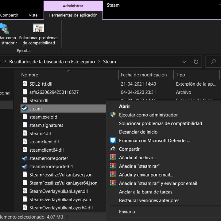 Una de las primeras y más importantes soluciones viables es reiniciar manualmente la aplicación Steam desde el Explorador de archivos, en lugar de acceder desde el iíono en tu escritorio. Para ello, debes hacer lo siguiente: