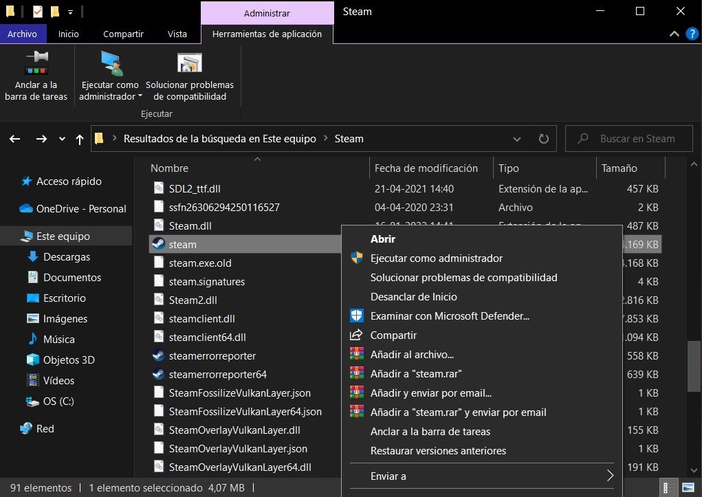Una de las primeras y más importantes soluciones viables es reiniciar manualmente la aplicación Steam desde el Explorador de archivos, en lugar de acceder desde el iíono en tu escritorio. Para ello, debes hacer lo siguiente: